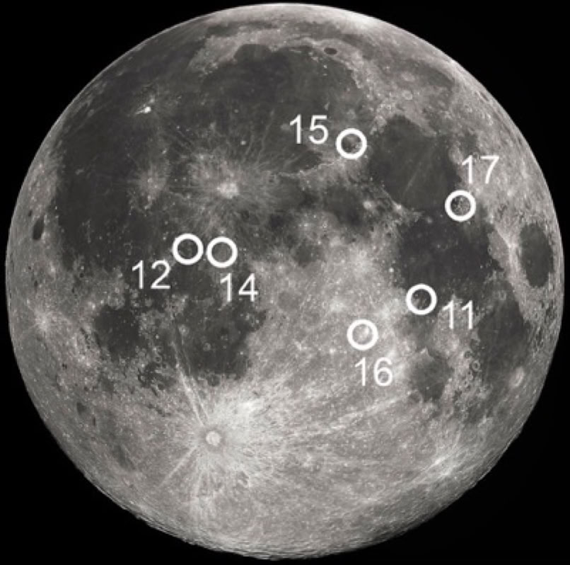The six Apollo moon landings spread across a big part of the face of the moon, mostly not too far from the equator and where previous surveys had been done...