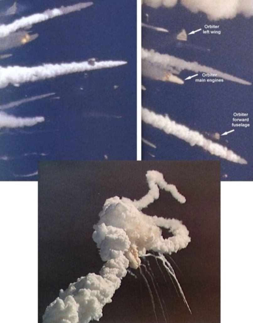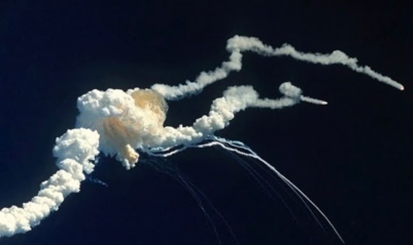 The catastrophe was caused by O-ring failure in the righthand SRB due to launching at 28F (-2C), when the O-rings would be too rigid to seal as the SRB joints would flex.