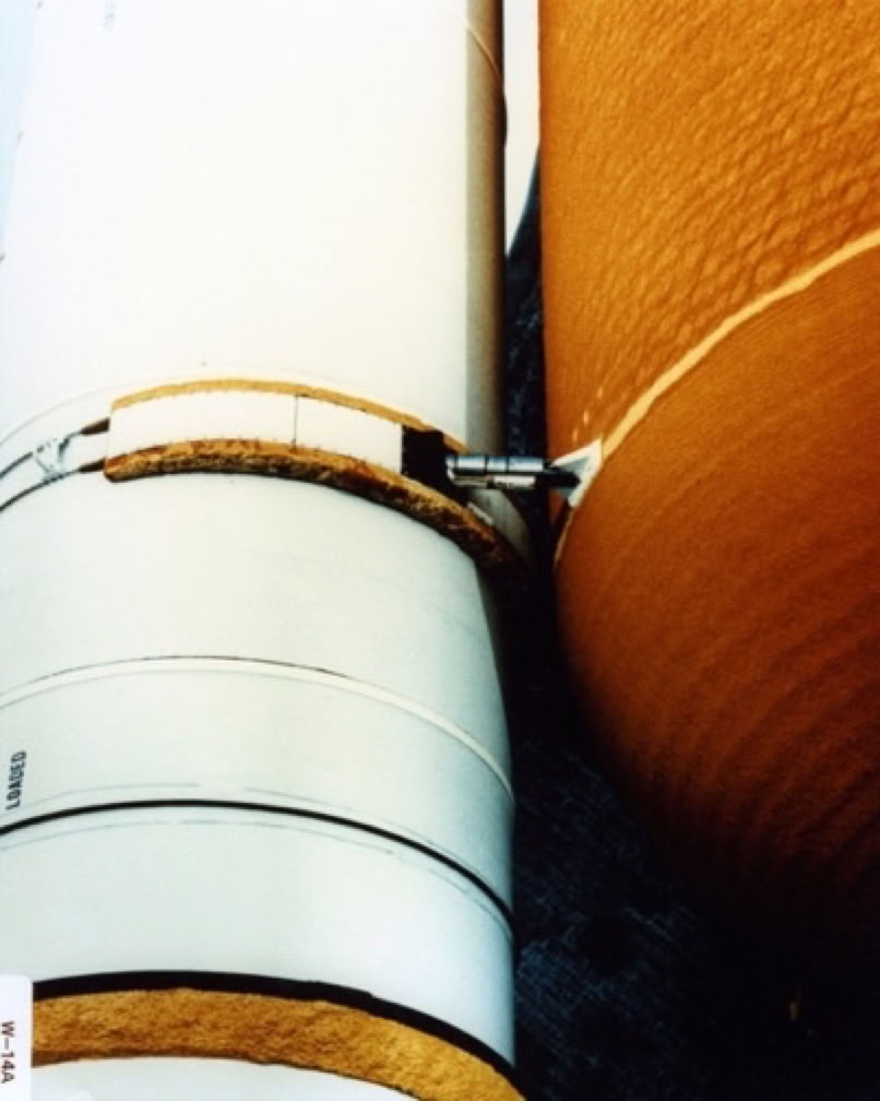 They revealed a hole about 28" wide with soot-blistered paint around its edge, proving the burn-through theory. The O-ring failed on the SRB at a point only two feet from the ET and the SRB support. Had it occurred at a point facing outward, away from the ET, the disintegration of the stack may not have happened, but the SRB would have had to burn for at least another 50 seconds before SRB separation.