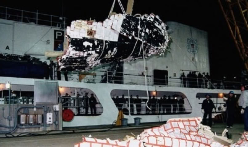 The crew cabin was formally identified on March 8th and US Navy divers on the USS Preserver completed recovery of the debris by April 4th. Six of the crew were recovered almost 6 weeks after the accident from a depth of 100 feet below the surface of the Atlantic.