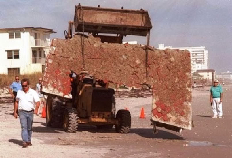 One of the left wing elevons (wing flap) measuring about 6’ by 15’ washed up at Cocoa Beach 15 miles south of the launch site in December 1996. This was also placed in one of the silos.